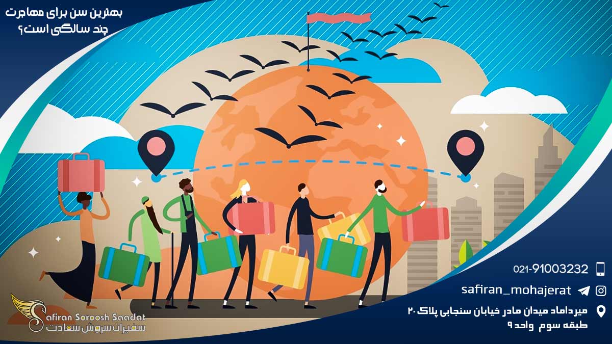 بهترین سن برای مهاجرت چند سالگی است؟ سوال اغلب متقاضیان مهاجرت می باشد؛ بهترین سن برای اخذ ویزا و انجام مهاجرت چه سنی می باشد. چرا که واقعا عامل سن، نقشی مهم و تعیین کننده دارد. عاملی که برای آفیسر مهاجرتی در سفارتخانه های خارجی نیز بسیار مهم است. حتی در پذیرش یا ریجکتی ویزا نیز اثرگذار است. تجربه نشان می دهد که بهترین سن برای مهاجرت تحصیلی سن 18 تا 25 سالگی، برای مهاجرت کاری سن 25 تا 35 سالگی و در صورت مهاجرت از طریق سرمایه گذاری معمولا سن 30 تا 50 سالگی می باشد. در کشورهایی نظیر کانادا و استرالیا که از سیستم امتیازبندی برای صدور ویزا استفاده می کنند، سن از جمله فاکتورهای امتیازبندی است.