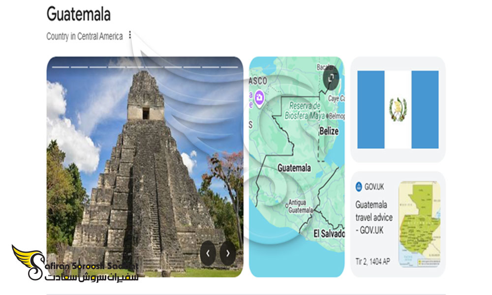 گواتمالا Guatemala یا رسما جمهوری گواتمالا کشوری واقع در آمریکای مرکزی است. پایتخت آن گواتمالا سیتی بوده و مردمانش از فرهنگ و زبان اسپانیایی برخوردارند. از نظر جغرافیایی نیز این کشور از شمال و غرب با نمکزیک، در شمال شرقی با بلیز، در شرق با هوندوراس و در جنوب شرقی نیز با السالوادور هم مرز است. همچنین این کشور لاتین تبار در جنوب توسط اقیانوس آرام و در شمال شرقی توسط خلیج هوندوراس احاطه شده است.